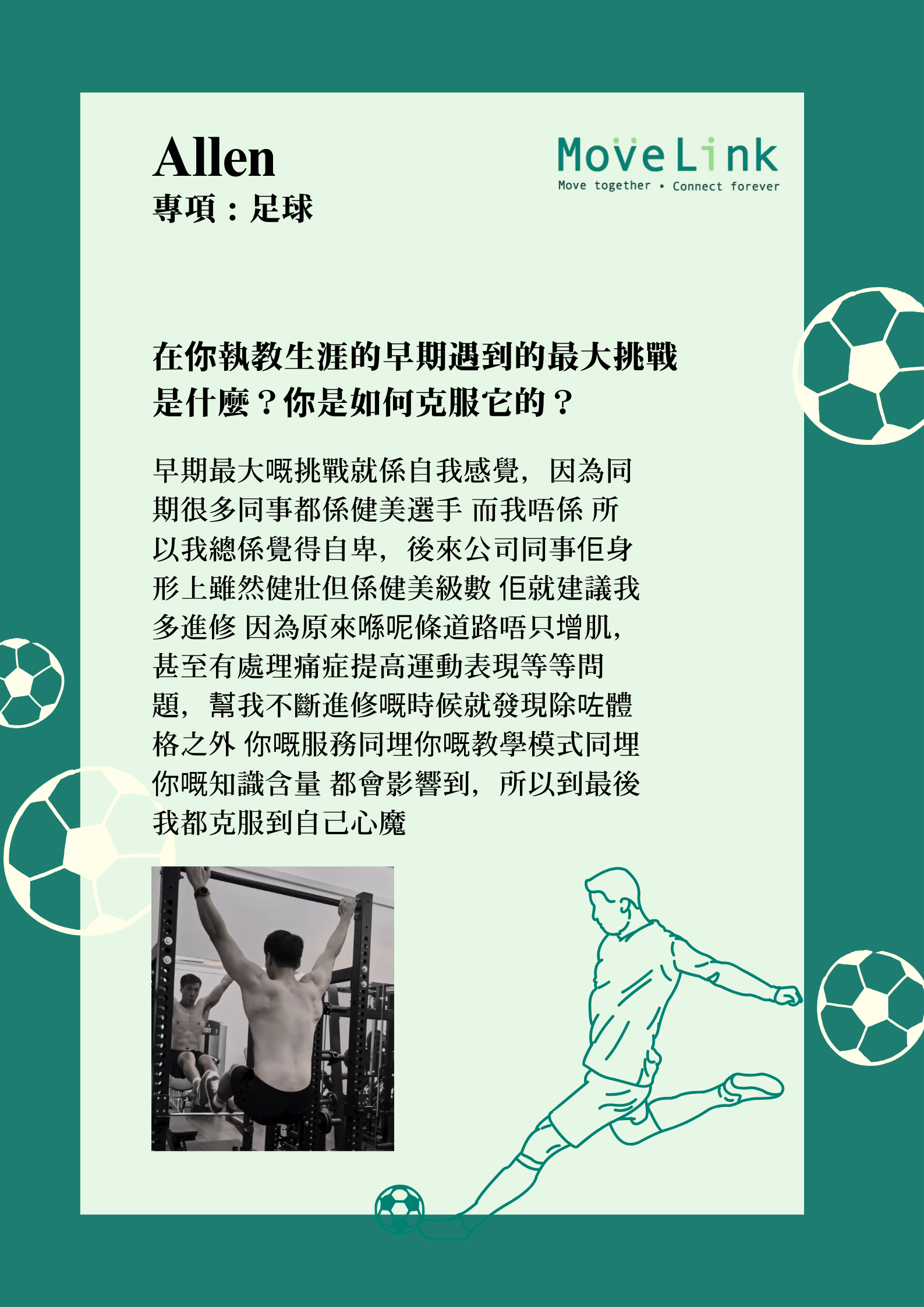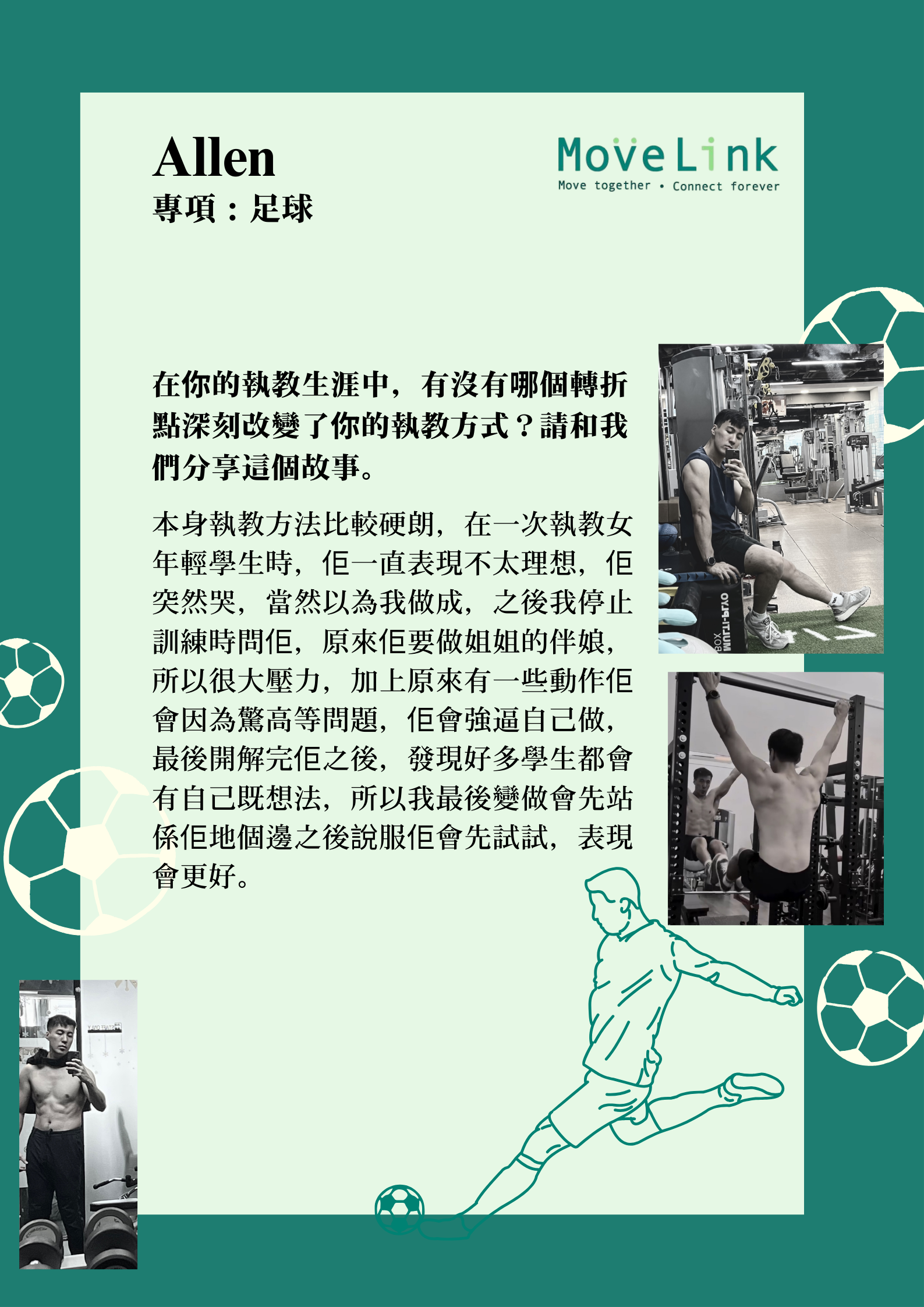 Home / 「他們」的精彩運動文章 Their sport journey / 從「伴娘壓力」到足球奇蹟-Allen教練的轉折啟示,改變執教一生!「意外轉折讓Allen頓悟:每位學生都有隱藏動機,先深入了解、再溫和說服試練,方能點燃真正火花!」 從「伴娘壓力」到足球奇蹟-Allen教練的轉折啟示,改變執教一生!「意外轉折讓Allen頓悟:每位學生都有隱藏動機,先深入了解、再溫和說服試練,方能點燃真正火花!」 Jul 13, 2025 MoveLink Facebook Twitter Pin Line Whatsapp Tumblr Back to the blog title Post comment Name E-mail Post comment Post comment