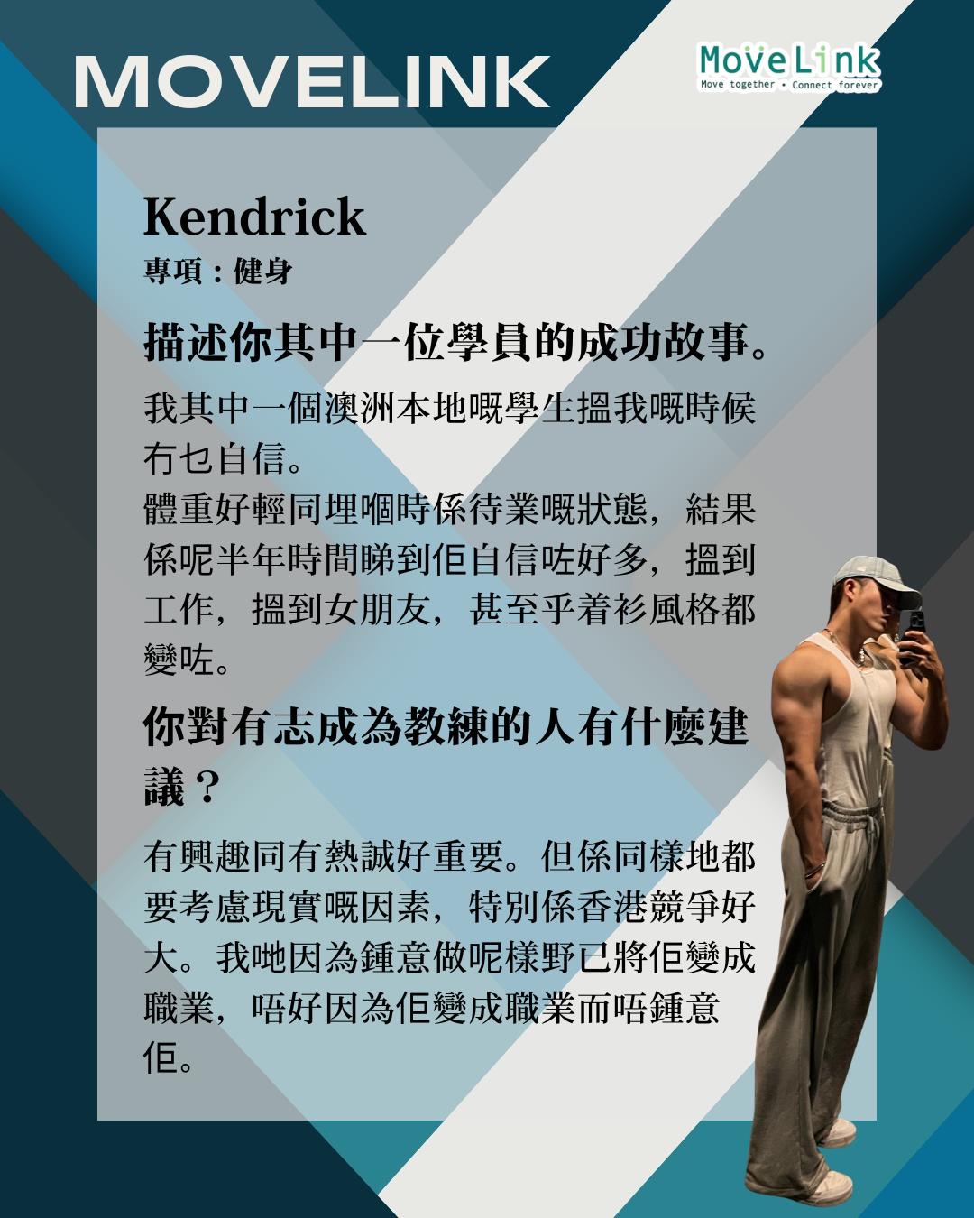Home / 「他們」的精彩運動文章 Their sport journey / Kendrick的健身成功故事與職業定位 Kendrick的健身成功故事與職業定位 Jan 12, 2026 MoveLink Facebook Twitter Pin Line Whatsapp Tumblr Back to the blog title Post comment Name E-mail Post comment Post comment