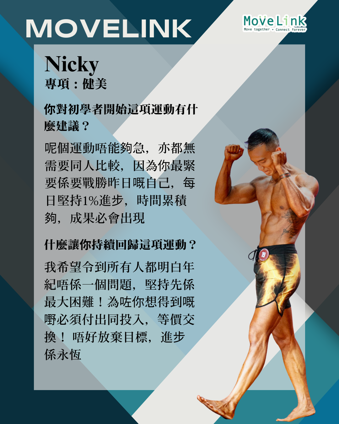 Home / 「他們」的精彩運動文章 Their sport journey / Nicky健身傳奇:從0到1的蛻變之旅 Nicky健身傳奇:從0到1的蛻變之旅 Oct 20, 2025 MoveLink Facebook Twitter Pin Line Whatsapp Tumblr Back to the blog title Post comment Name E-mail Post comment Post comment